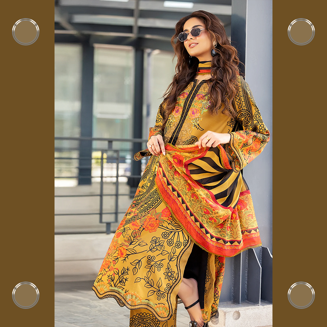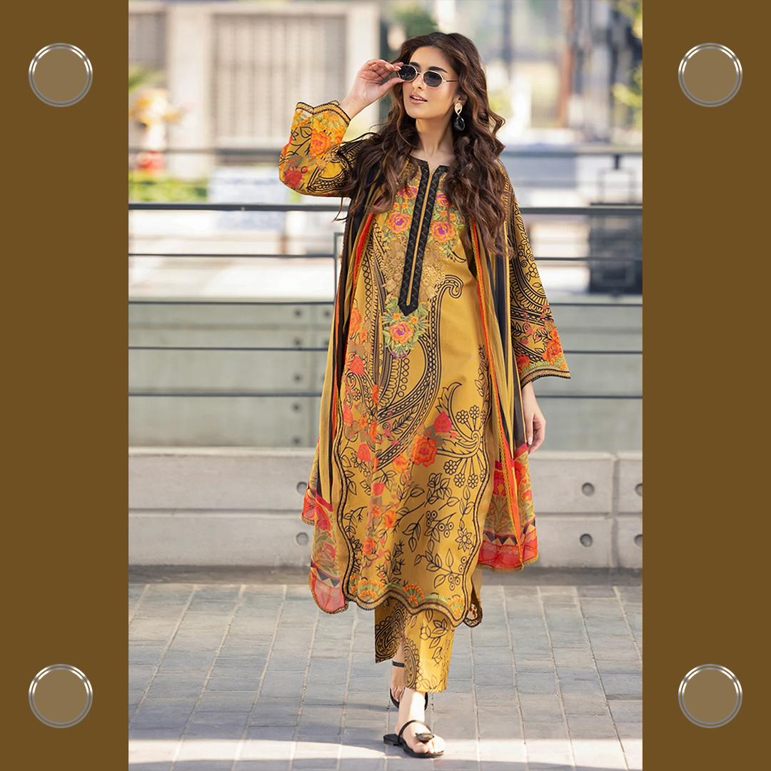 Celebrate the summer season with Charizma’s unstitched lawn 3-piece suit — premium quality, stunning prints, and effortless elegance for every festive moment.