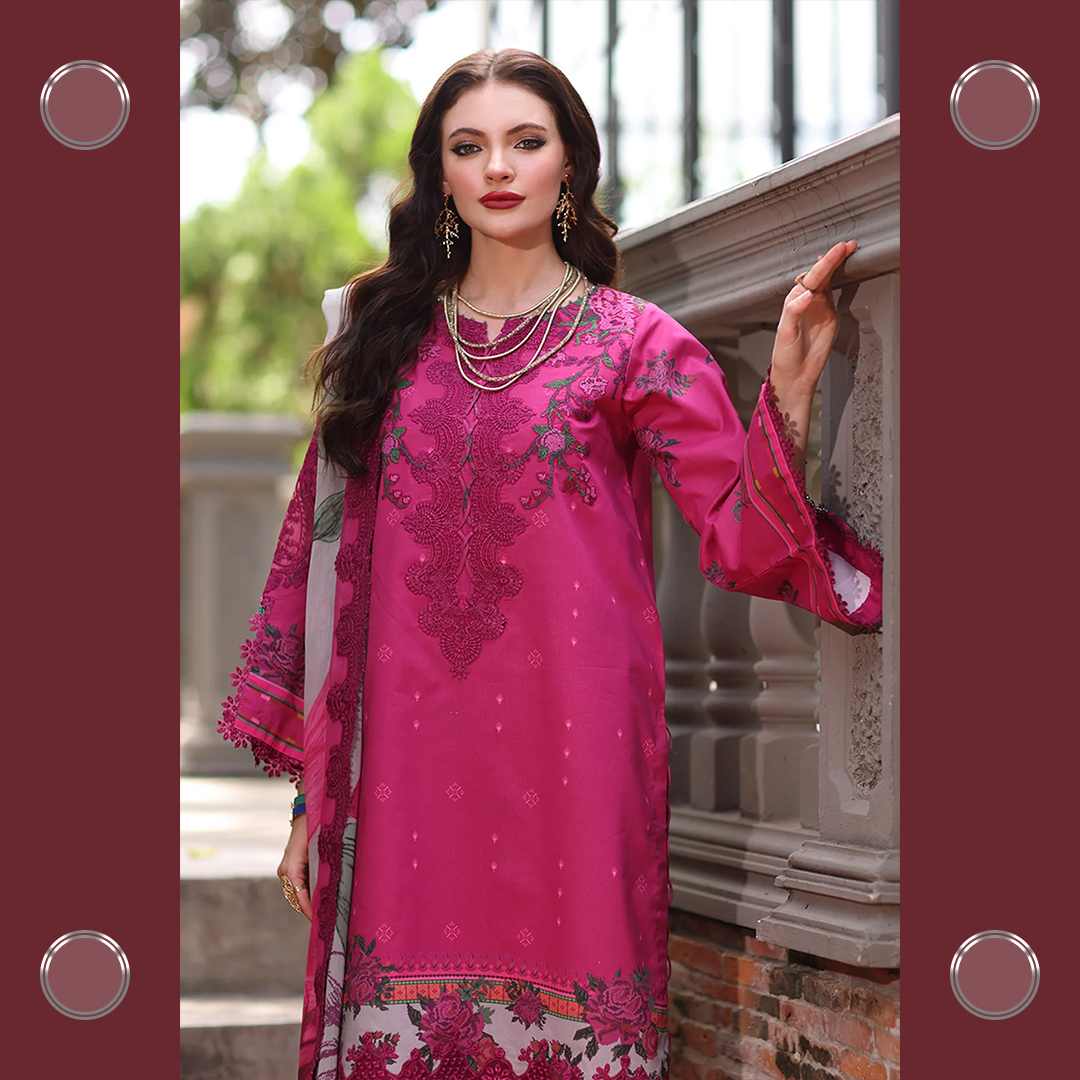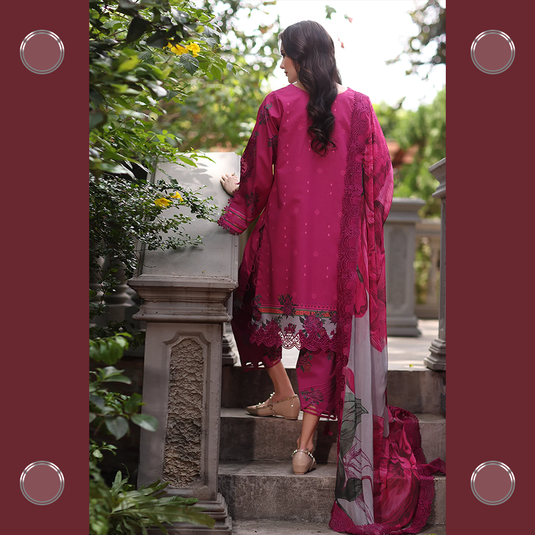 Celebrate the summer season with Charizma’s unstitched lawn 3-piece suit — premium quality, stunning prints, and effortless elegance for every festive moment.