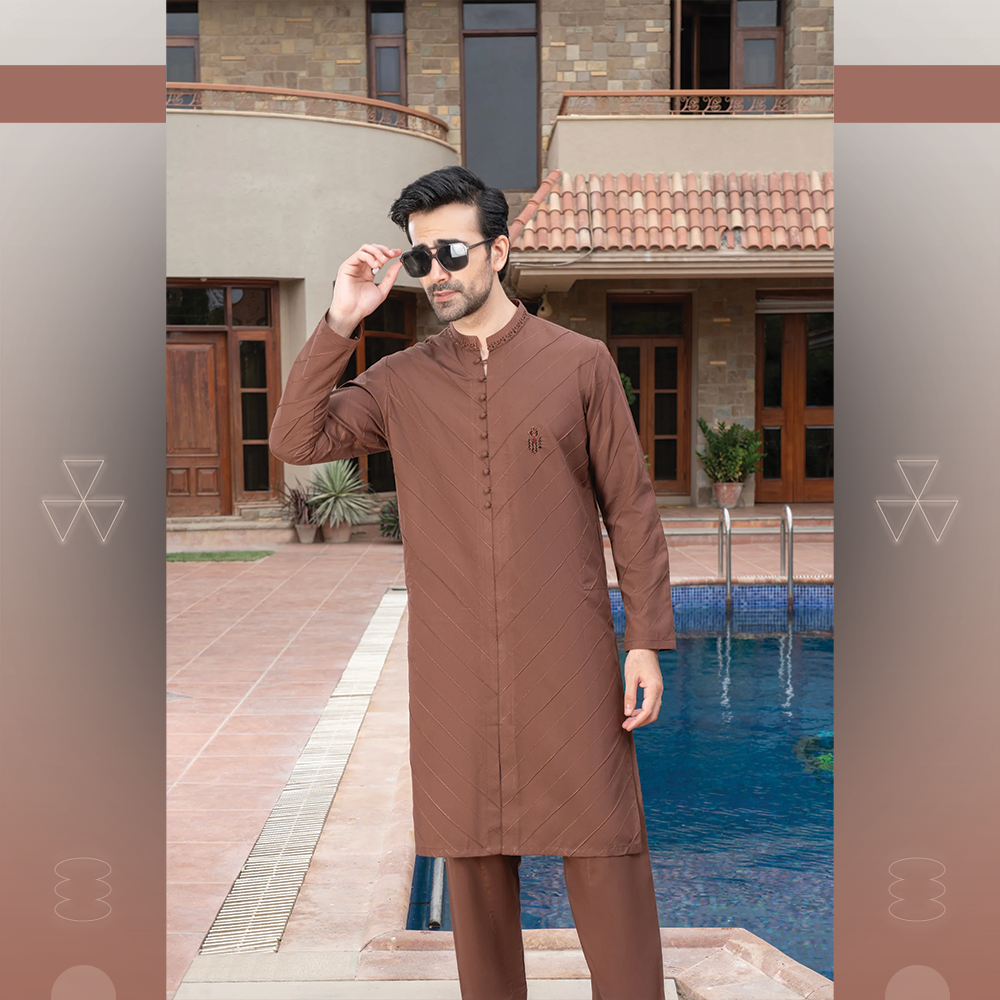 Elegant Chawla men’s festive shalwar kameez made from soft blended fabric, ideal for celebrations and gatherings.