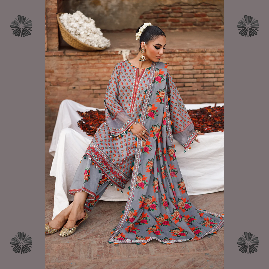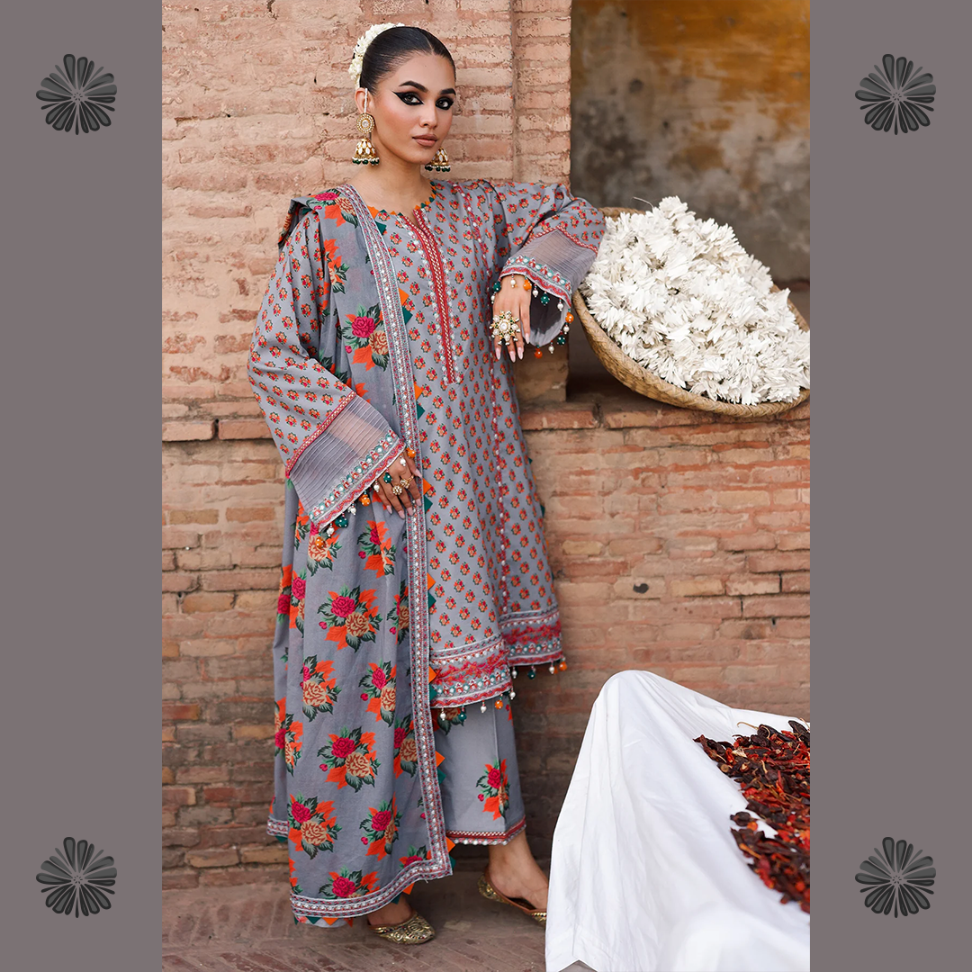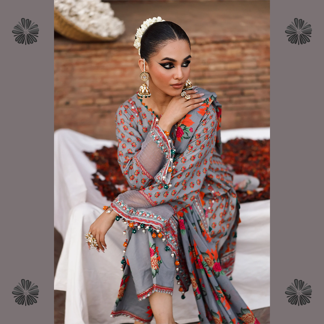 Celebrate the summer season with Charizma’s unstitched lawn 3-piece suit — premium quality, stunning prints, and effortless elegance for every festive moment.