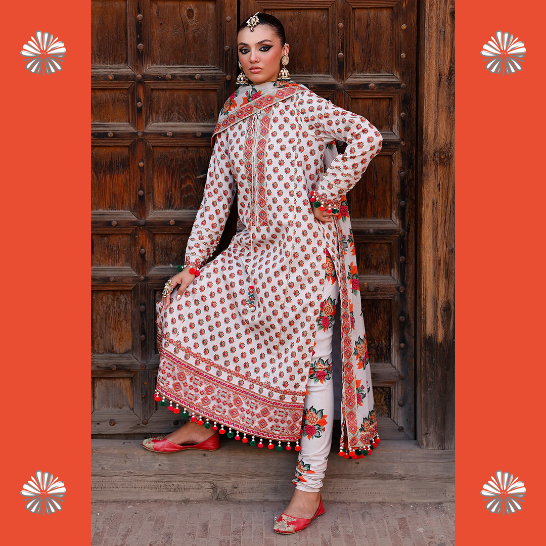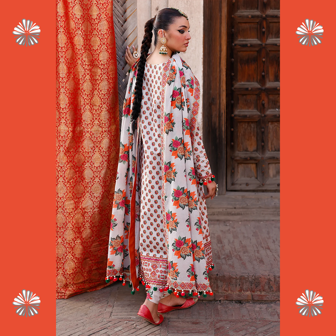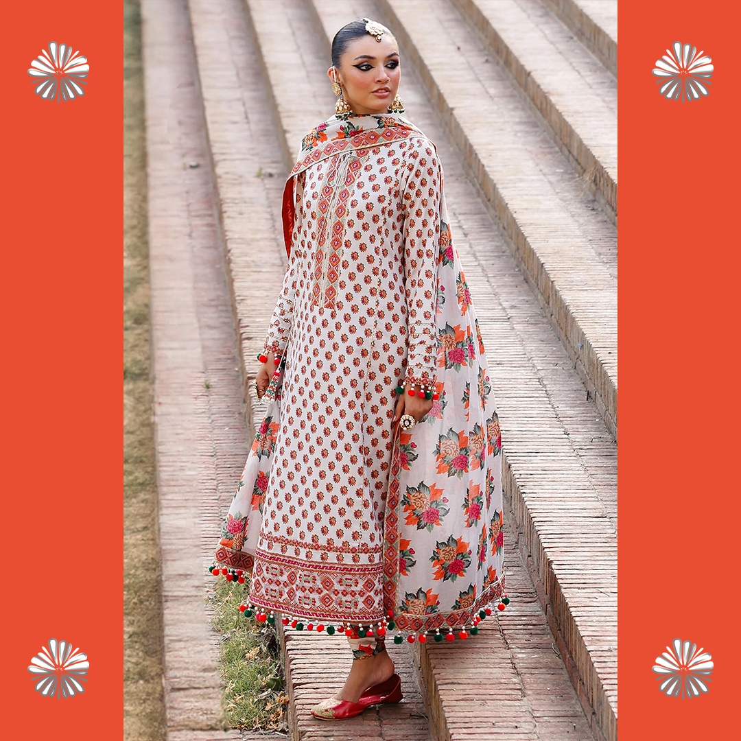 Celebrate the summer season with Charizma’s unstitched lawn 3-piece suit — premium quality, stunning prints, and effortless elegance for every festive moment.