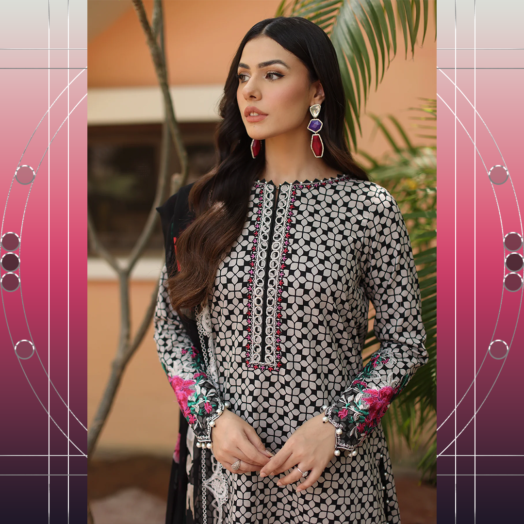 Celebrate the summer season with unstitched lawn and chiffon 3-piece suit — premium quality, stunning prints, and effortless elegance for every festive moment.
