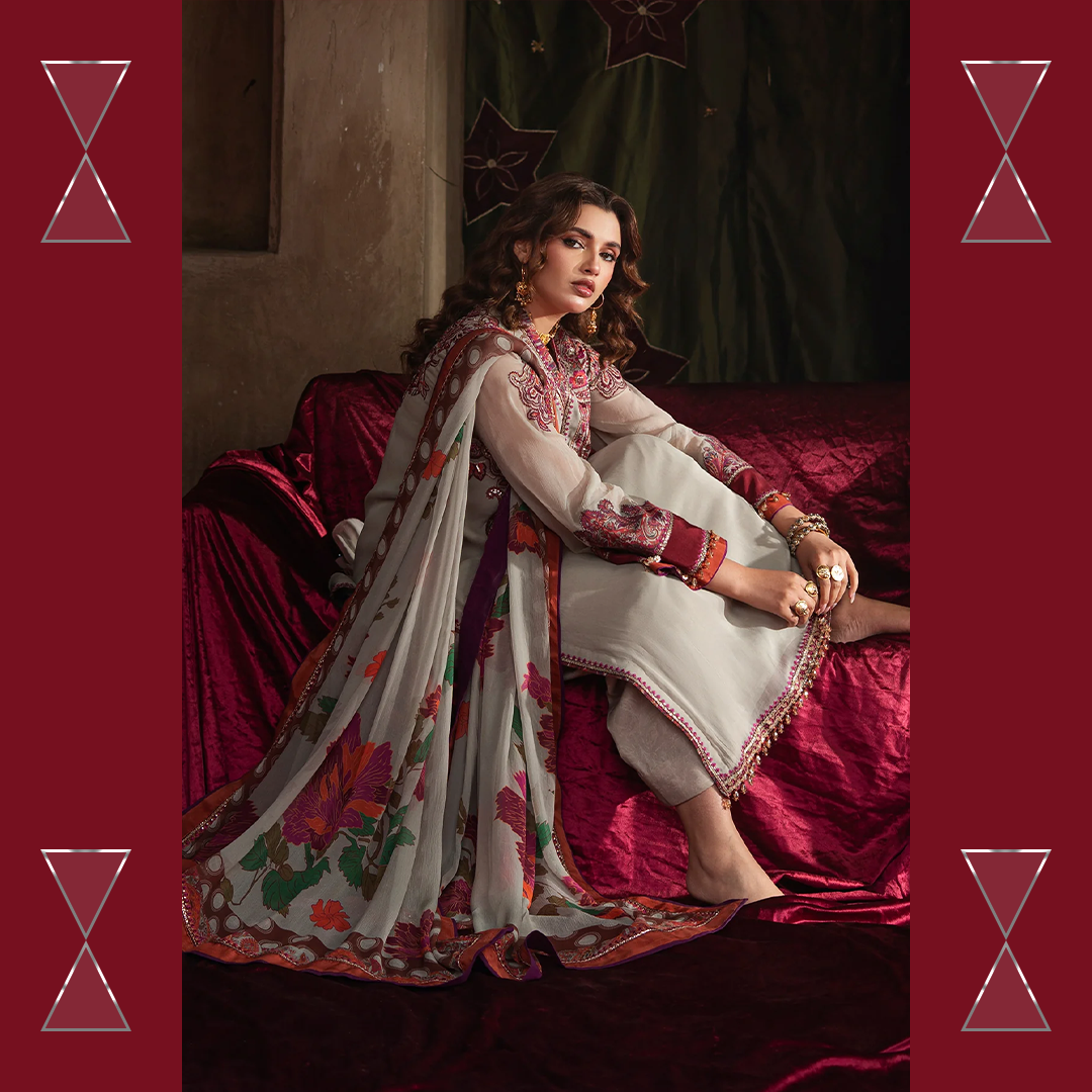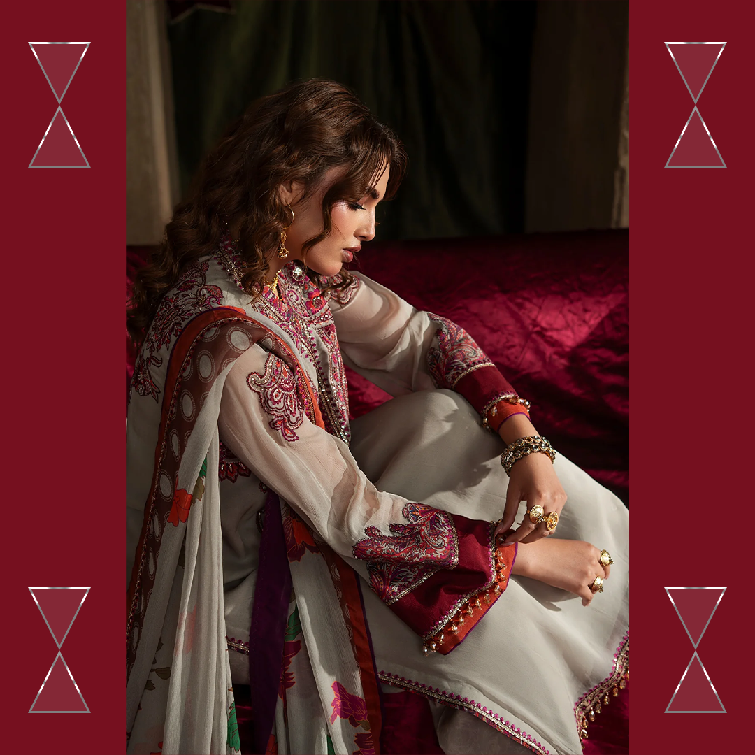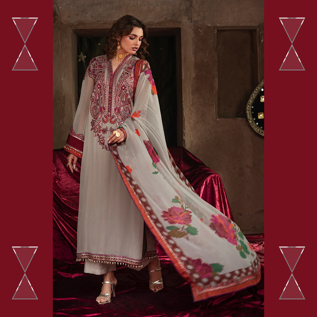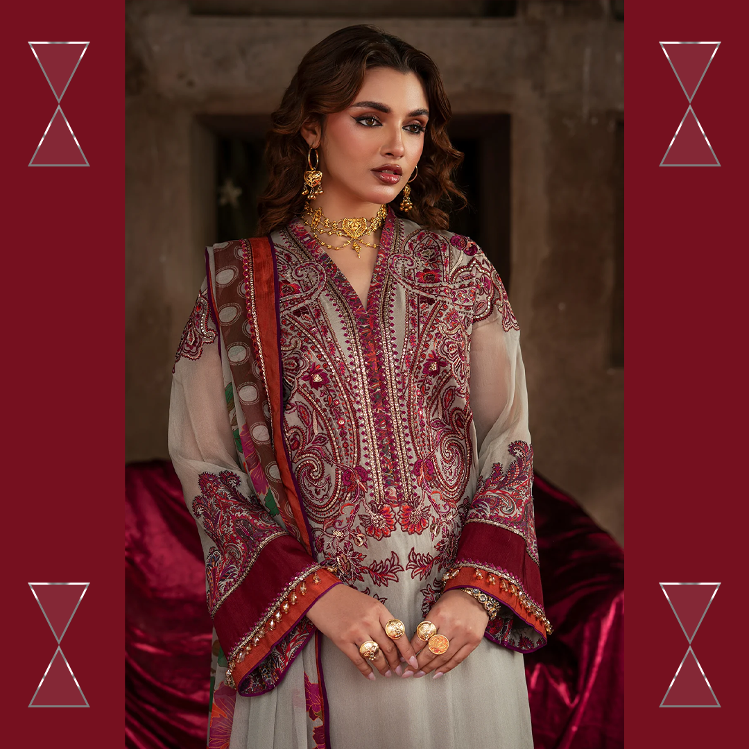 Celebrate the summer season with Charizma’s unstitched chiffon and raw silk 3-piece suit — premium quality, stunning prints, and effortless elegance for every festive moment.