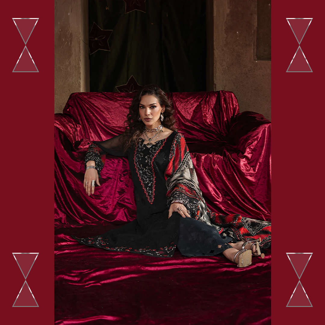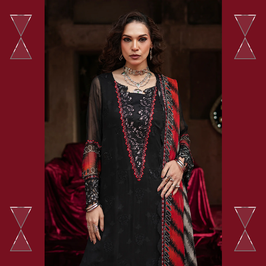 Celebrate the summer season with Charizma’s unstitched chiffon and raw silk 3-piece suit — premium quality, stunning prints, and effortless elegance for every festive moment.