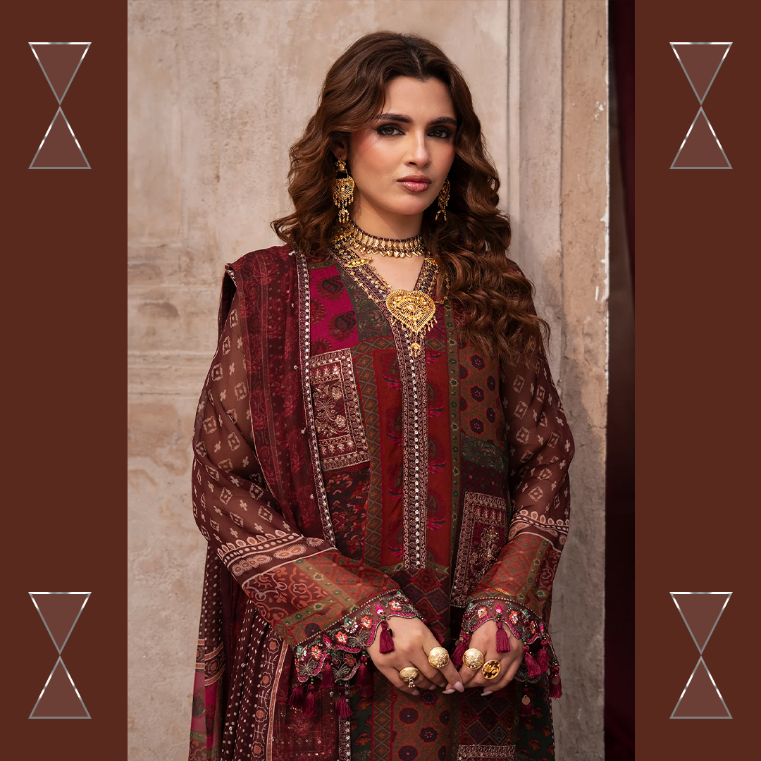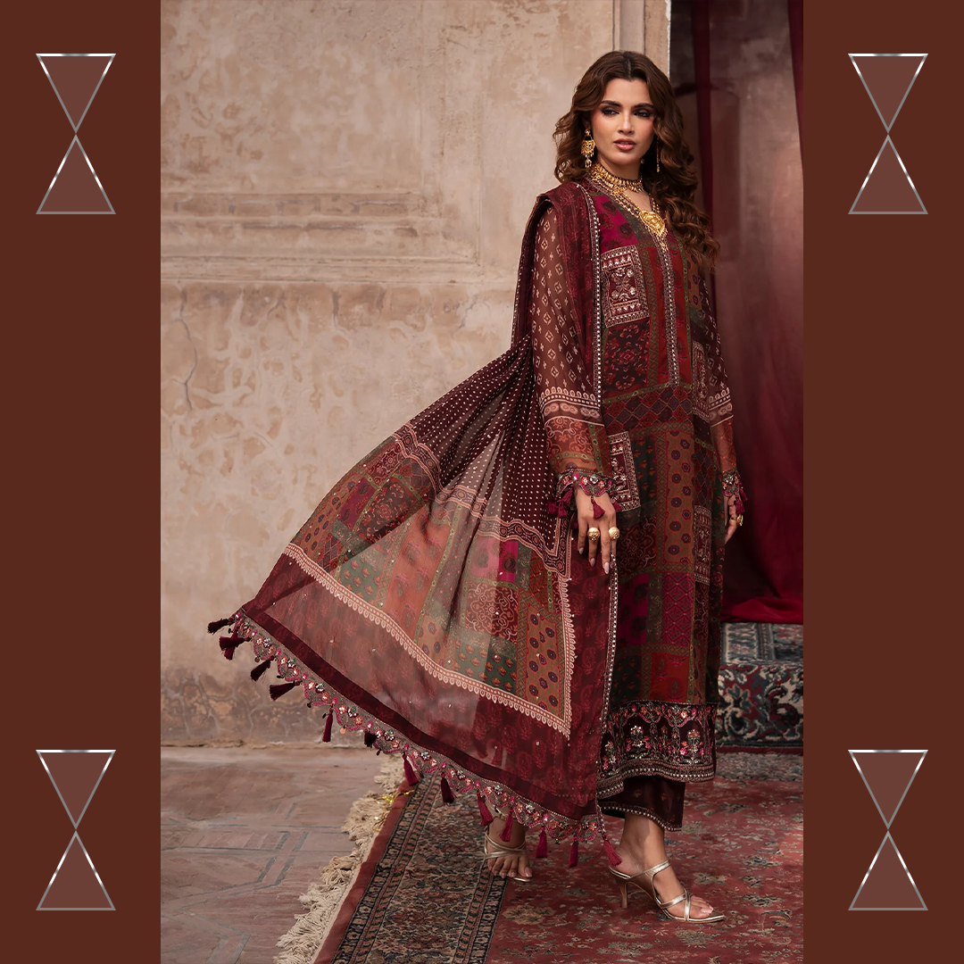 Celebrate the summer season with Charizma’s unstitched chiffon and raw silk 3-piece suit — premium quality, stunning prints, and effortless elegance for every festive moment.