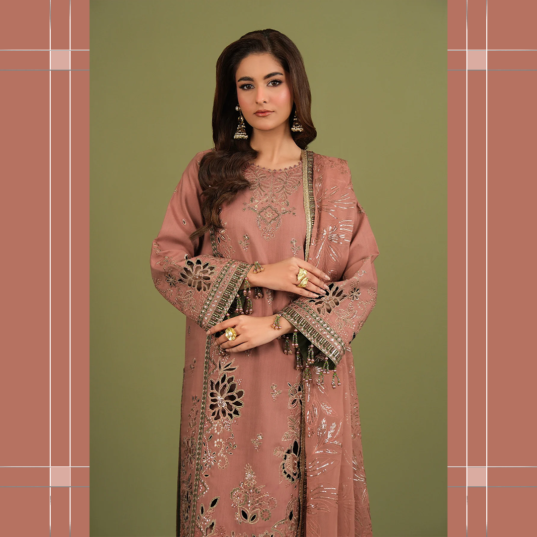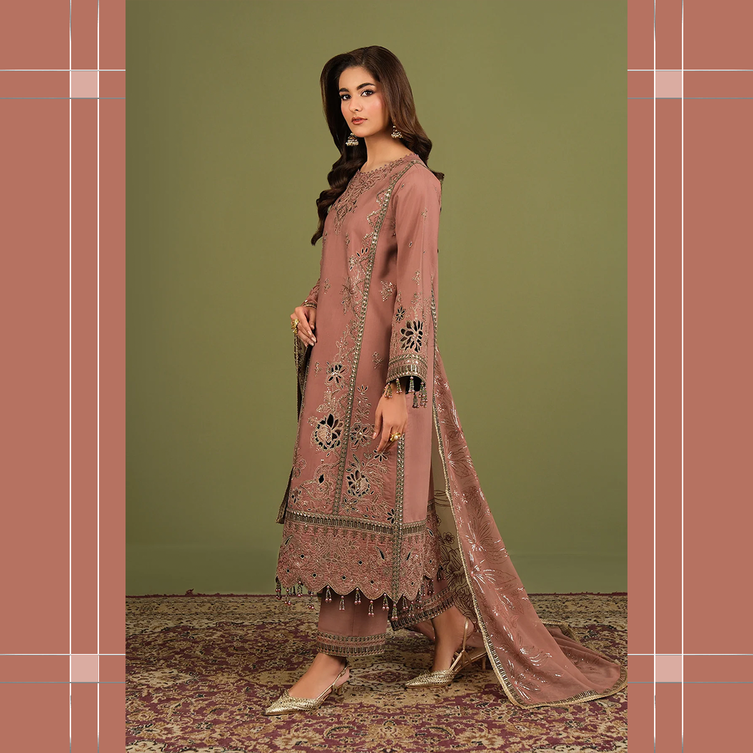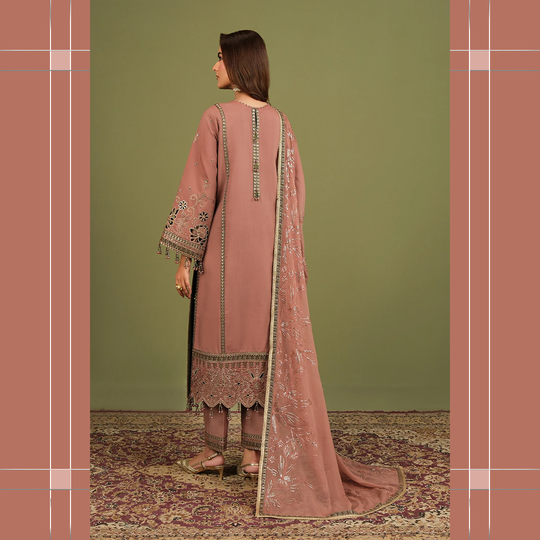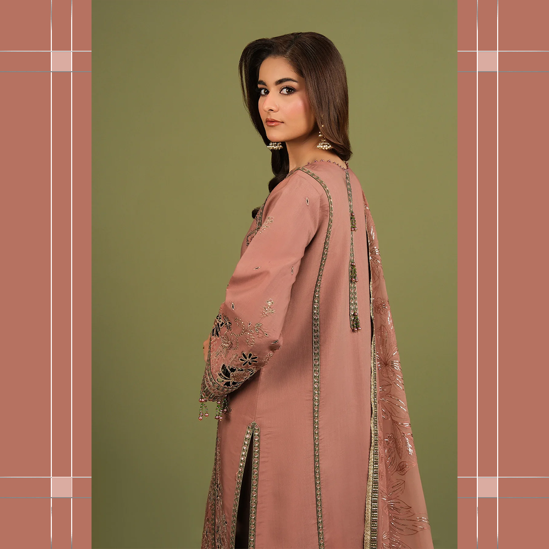 Premium embroidered raw silk suit with elegant detailing, perfect for festive events and sophisticated formal occasions.