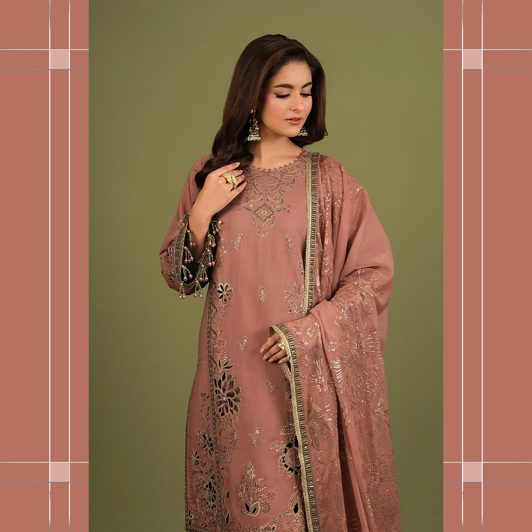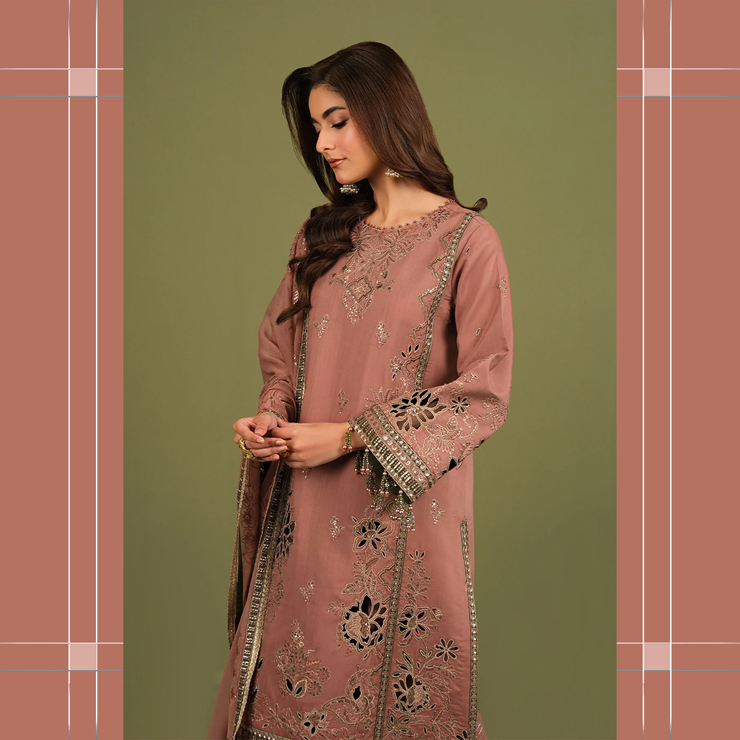 Embroidered Laser Cut Raw Silk Sleeves + Trousers Border