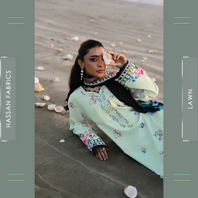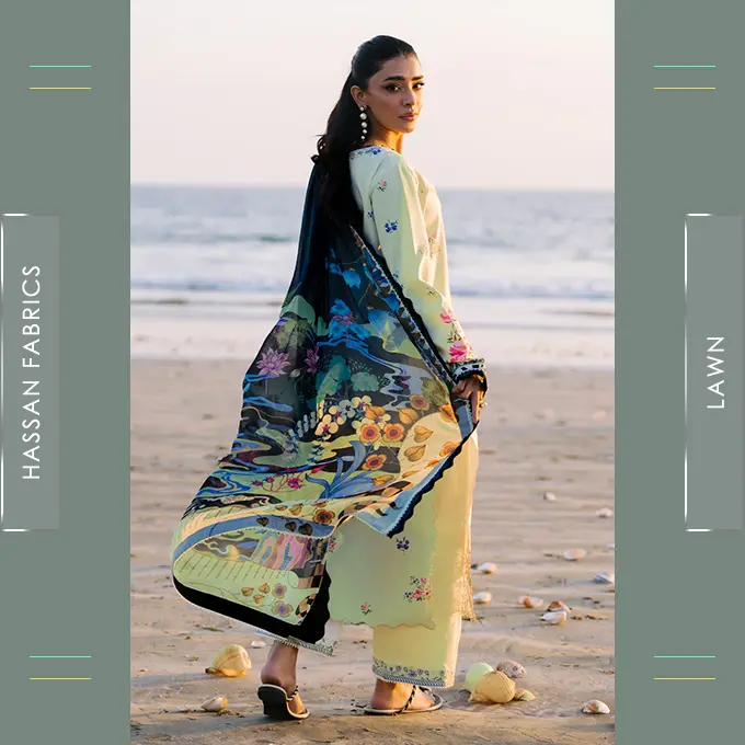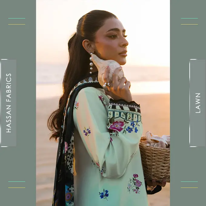 Embroidered lawn shirt, cotton trousers, and chiffon dupatta combine for effortless elegance. A must-have from summer season collection.