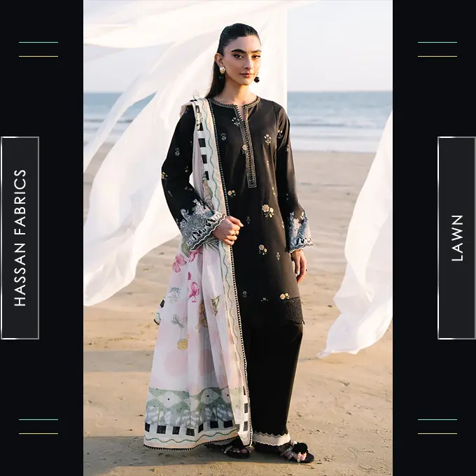 Embroidered lawn shirt, cotton trousers, and monar dupatta combine for effortless elegance. A must-have from summer season collection.