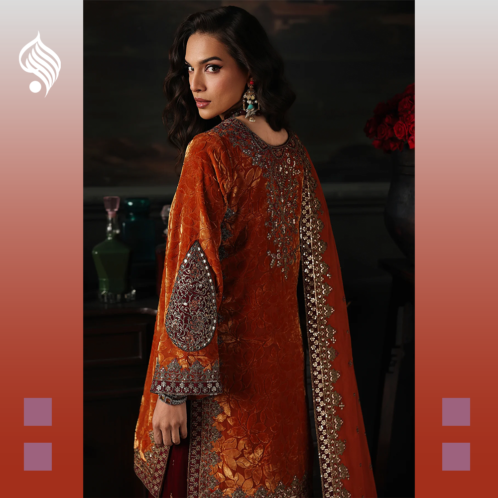 Celebrate the season with Charizma’s unstitched velvet 3-piece suit — premium quality, stunning prints, and effortless elegance for every festive moment.