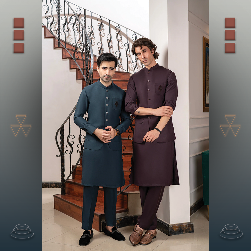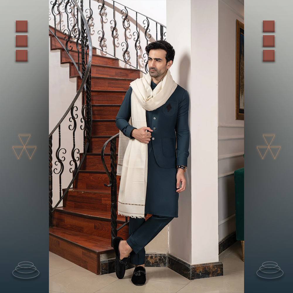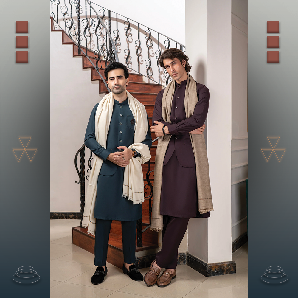 Redefine traditional menswear with this festive Chawla collection. Elegant Shalwar Kameez and Waistcoat designed for weddings, Eid, and formal gatherings.