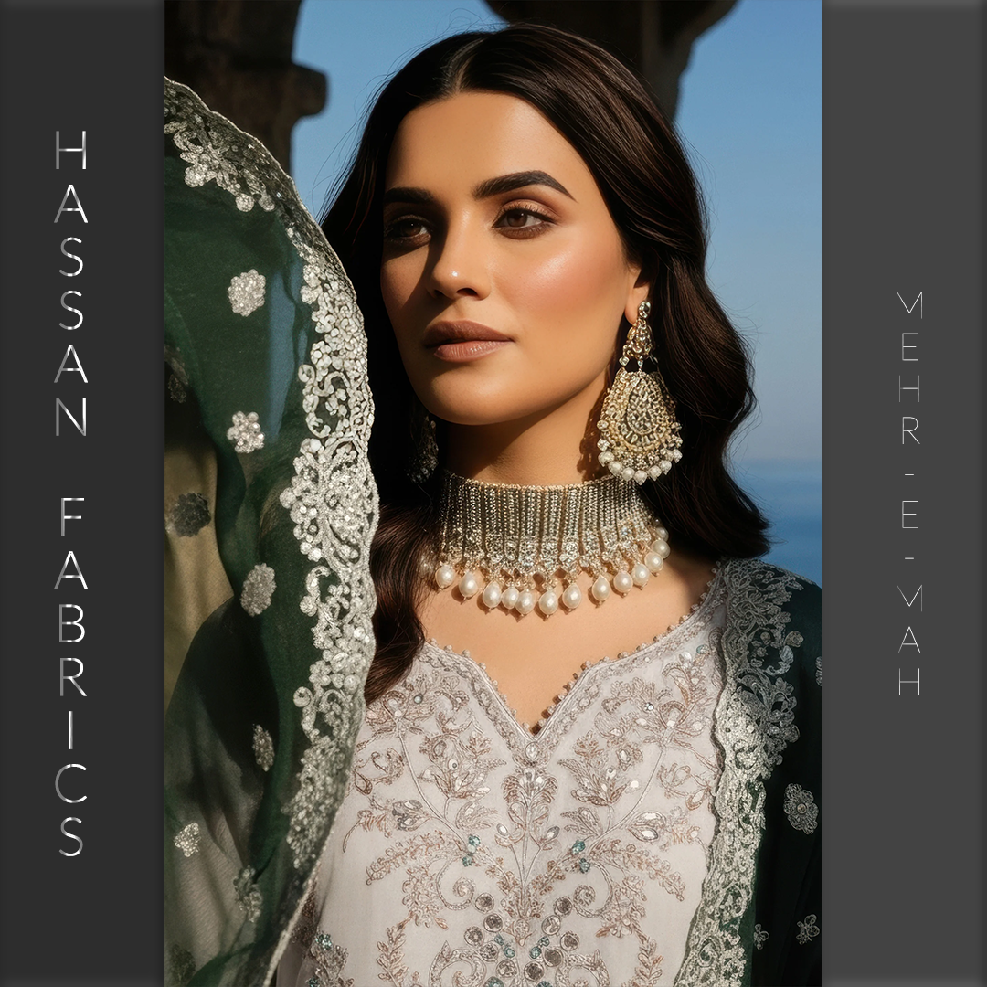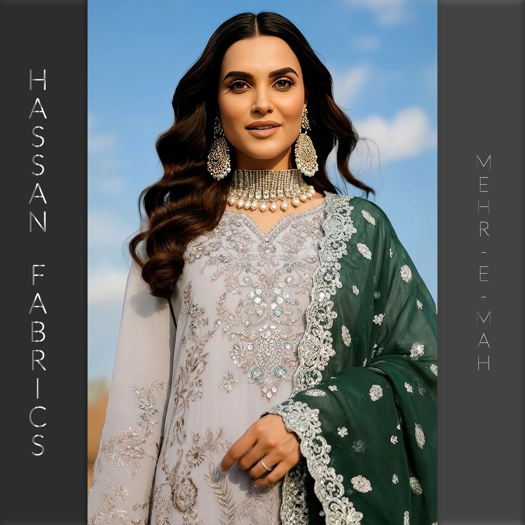 Embroidered pure bamber chiffon front embellished with handmade