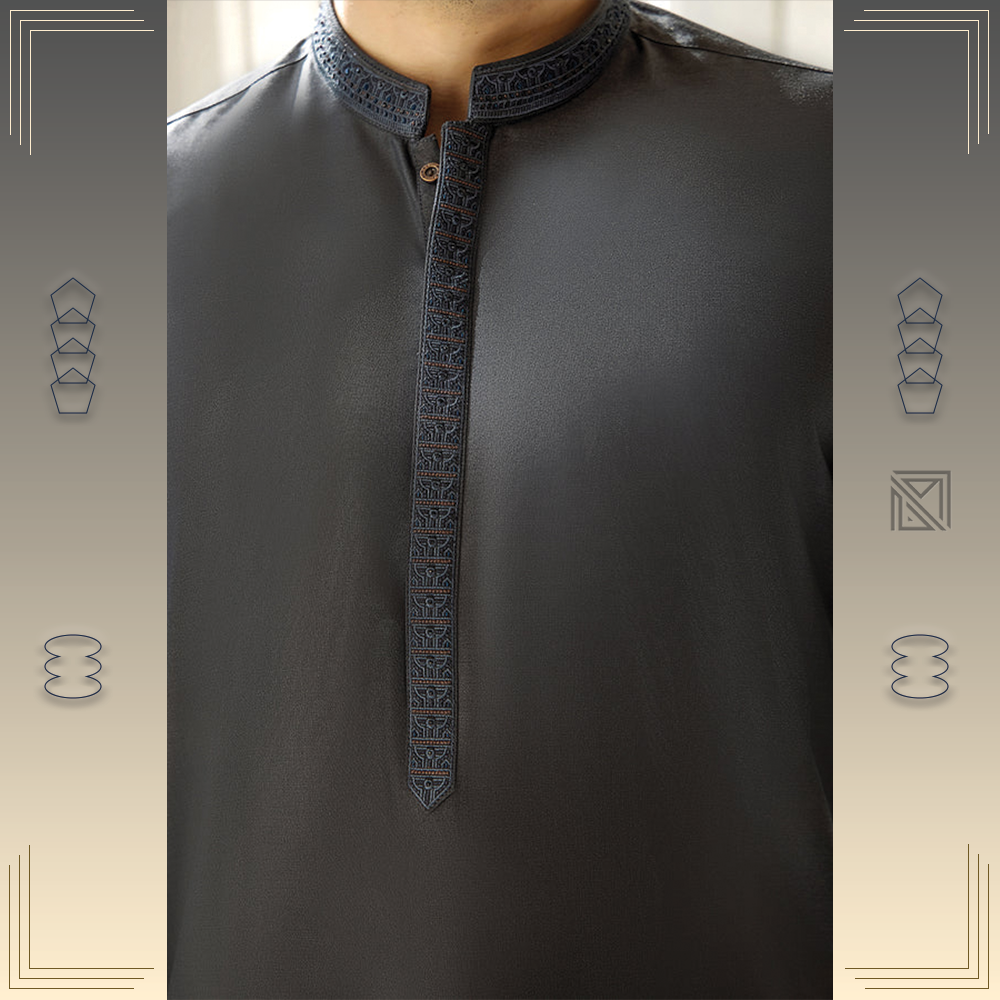 Executive Suit For Men With Cuts Work On Collar and Placket