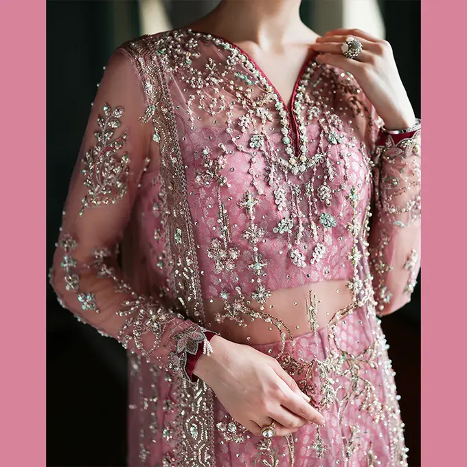 • Embroidered, sequined & hand embellished finishing lace (organza) 2