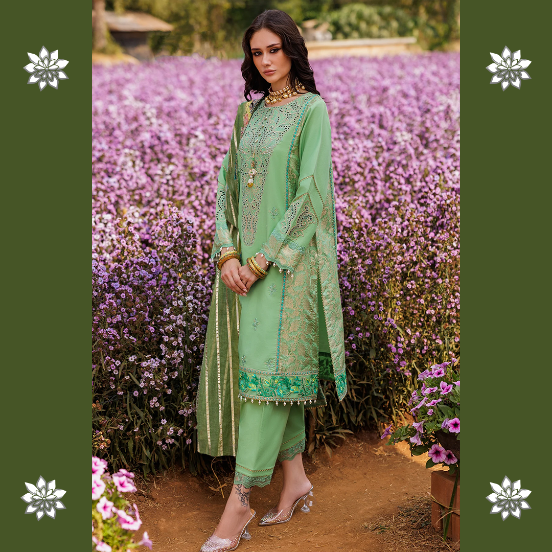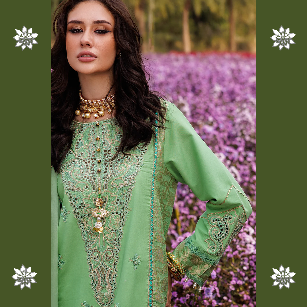 Our Jacquard Lawn Festive Edit showcases airy textures, detailed embroideries, and a soothing summer palette perfect for Eid festivities with a modern yet cultural appeal.
