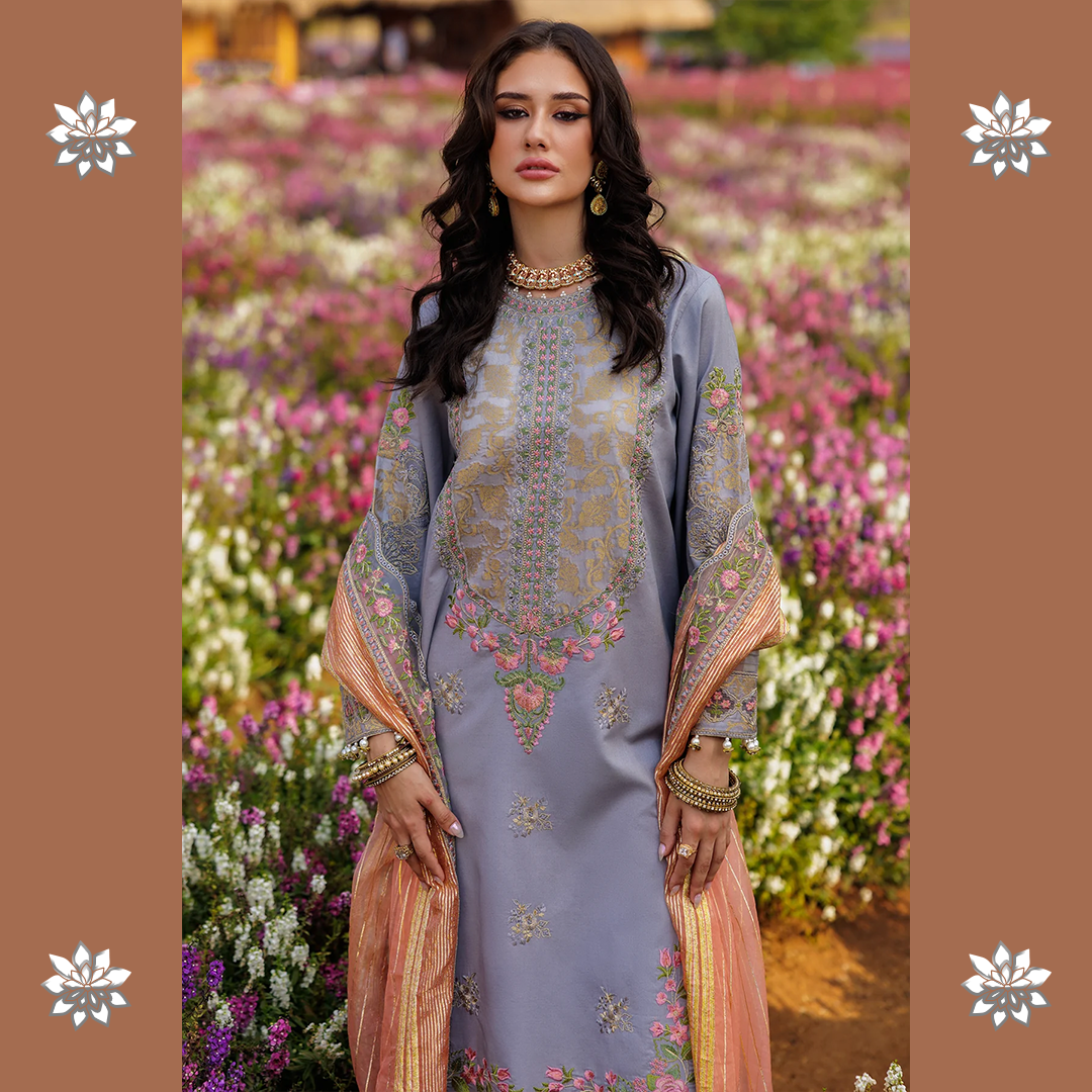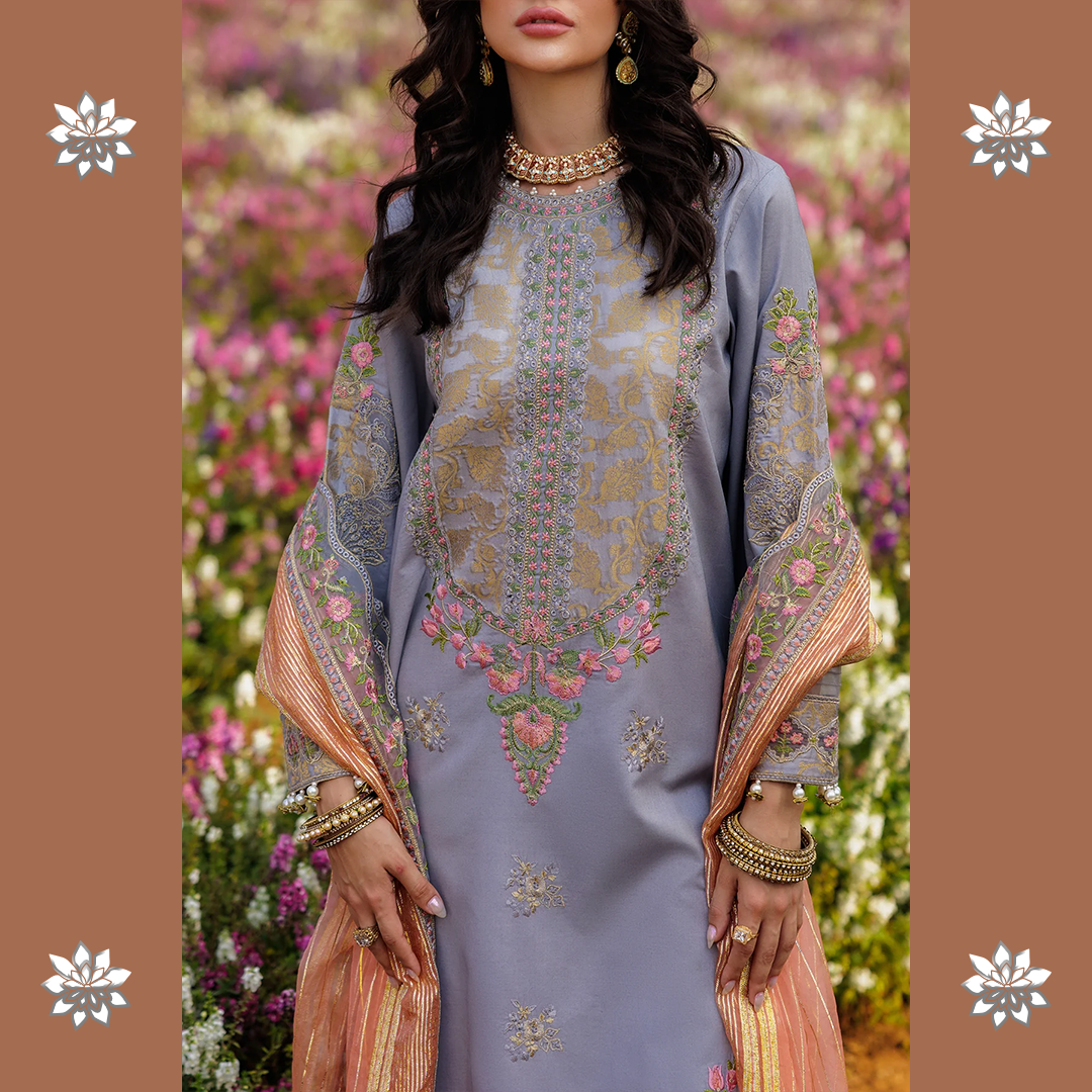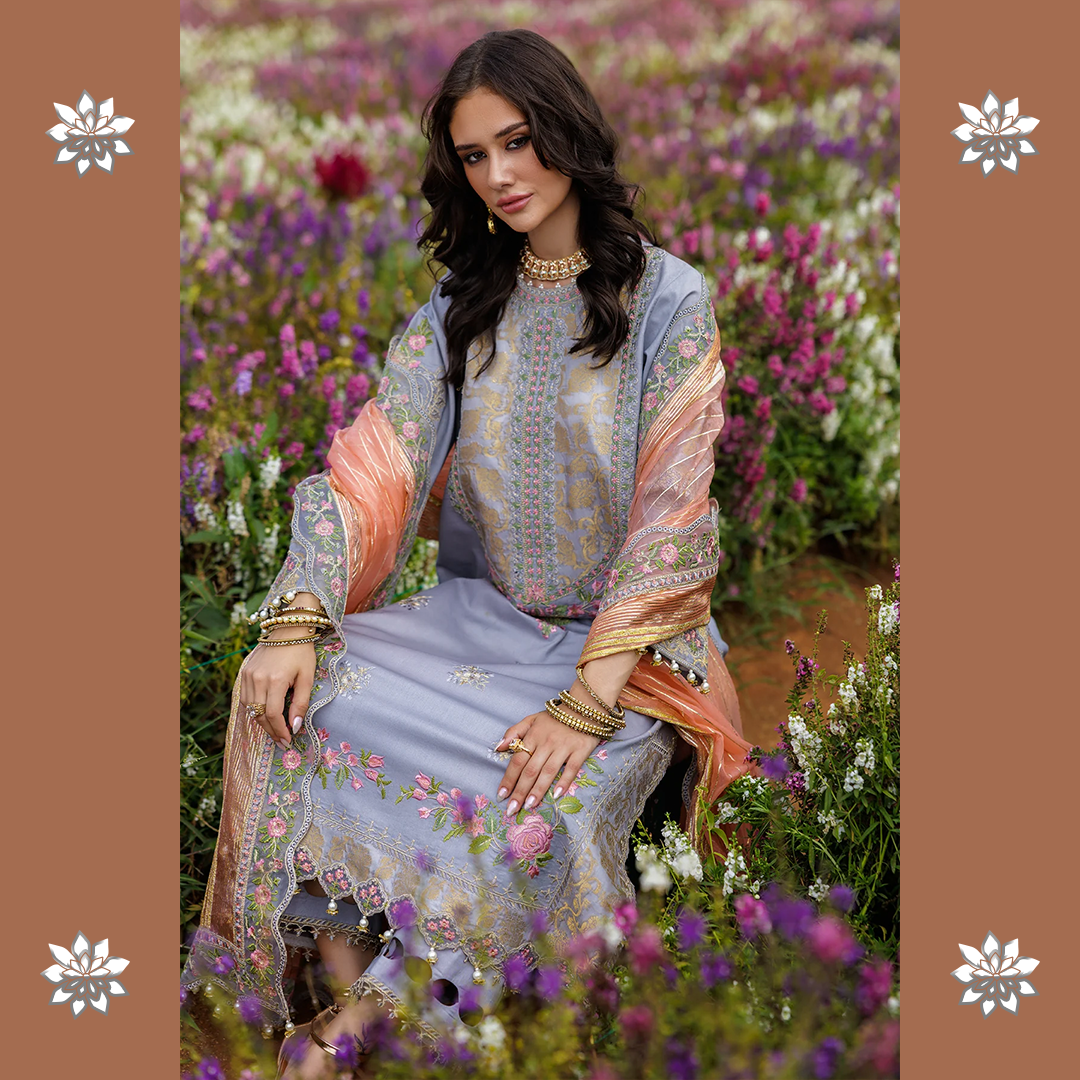 Our Jacquard Lawn Festive Edit showcases airy textures, detailed embroideries, and a soothing summer palette perfect for Eid festivities with a modern yet cultural appeal.